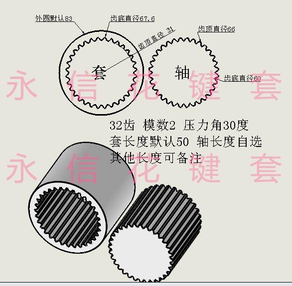 32 tooth modulus 2 pressure angle 30 sets of large diameter 67 6 small diameter 62 shaft large diameter 66 supports customized factory direct sales