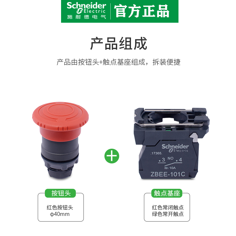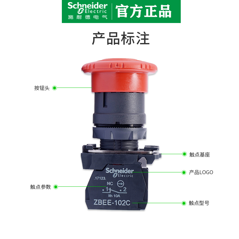 Schneider emergency stop switch XB5AS542C rotary reset emergency stop button ZBEE-102C emergency stop button