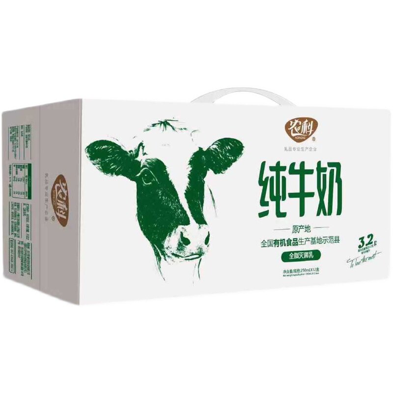 Fresh agricultural milk 250ml * 24 boxes of pure milk packed with nutritious breakfast for children's middle-aged and elderly drinks