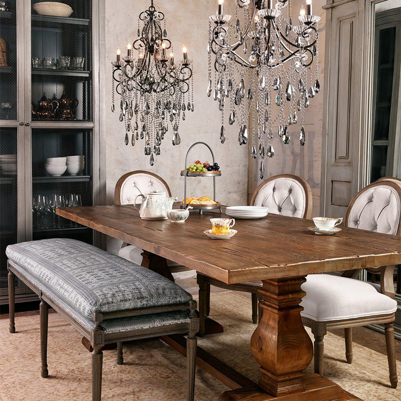 American solid wood dining table country house retro French light luxury dining table rectangular conference table workbench long table