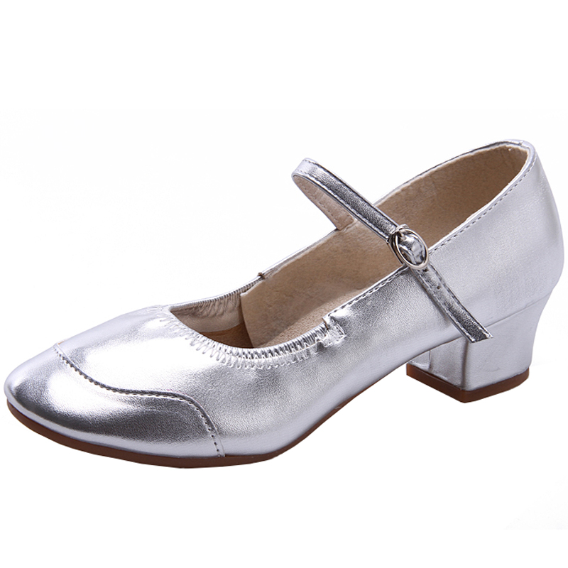 Square dance shoes mid heel dance shoes female adult leather soft sole dance shoes square dance girls shoes practice shoes four~