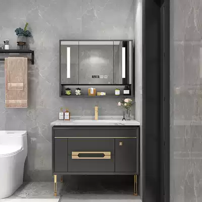 Light luxury simple rock board bathroom cabinet mirror cabinet combination solid wood sink wash basin toilet washing table floor standing