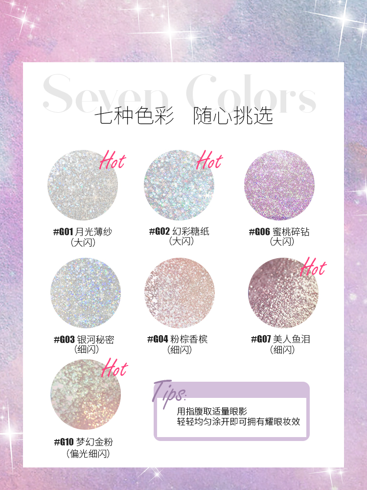 G01 Moon Light Thin Yarn (Giver Details Brush) G02 Phantom Candy Wrapping Paper (Giver Details Brush) G03 Galactic Secret (Give Details Brush) G04 Powder Brown Champagne (Give Details Brush) G