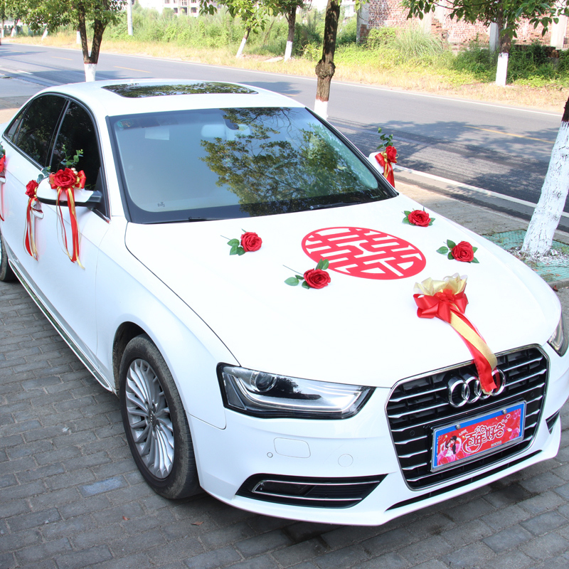 Wedding Accessory Car Head Flower Decoration Suit Flocking Cloth Red Xi Chinese Wedding Deputy Car Team Arranged Wedding Celebration Non Flowers