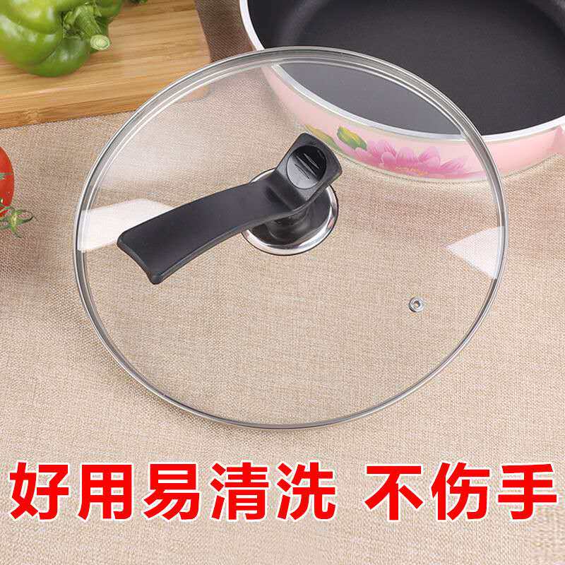 General transparent tempered glass cover can be liquid 24 26 28 30 32 34CM frying pan pan frying pan for household use