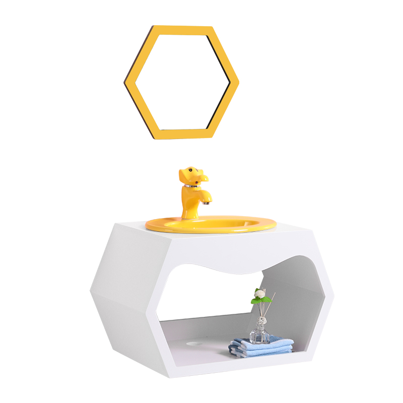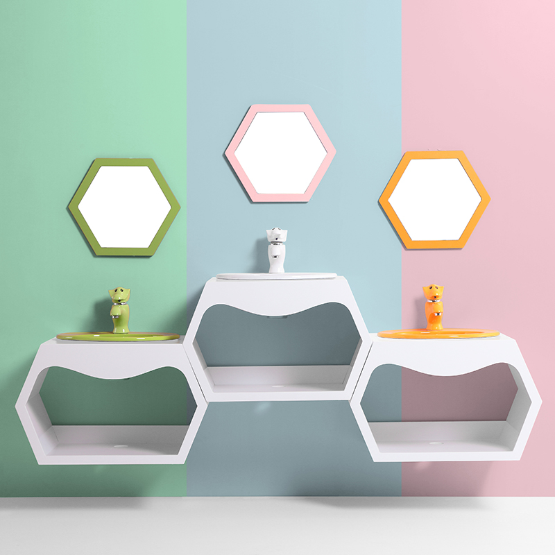 Three pots hanging cabinet frog mirror single cabinet square hanging cabinet (white) with hexagonal mirror (blue) with hexagonal mirror (yellow) with hexagonal mirror (green) with hexagonal mirror (orange) with hexagonal mirror