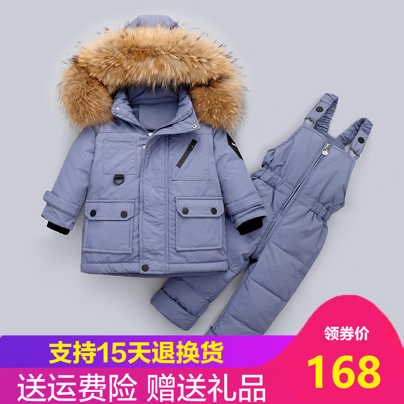 Baby's feather jacket boy suit children's pants thickening baby 1 - 5 year old baby winter coat Bala