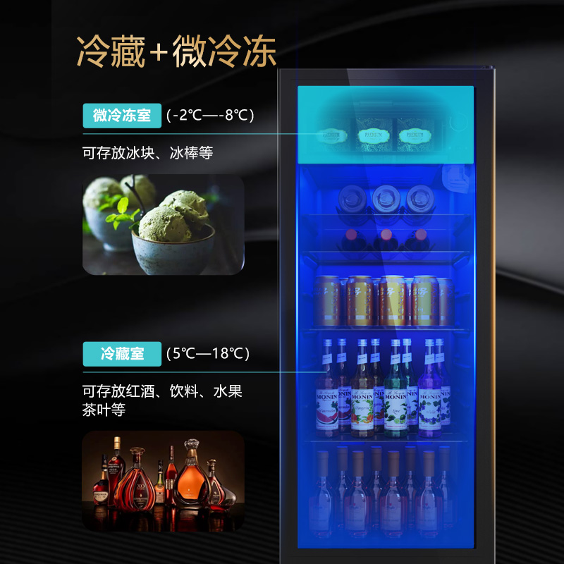 Rongshida Ice Bar Small Household Refrigerator Office Living Room Tea Beverage Glass Door Transparent Refrigerated Fresh-keeping Cabinet