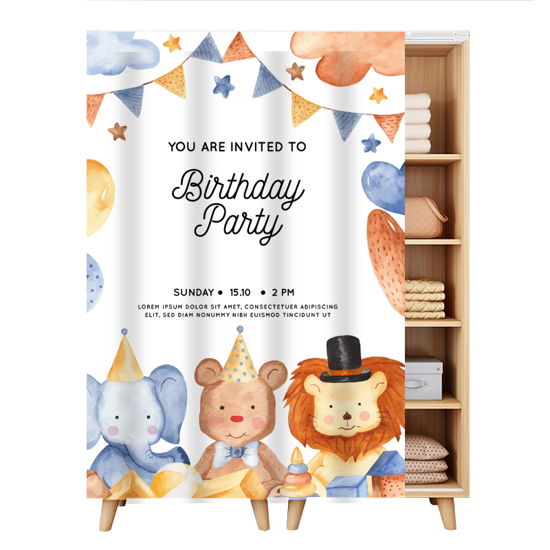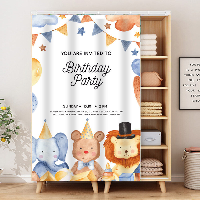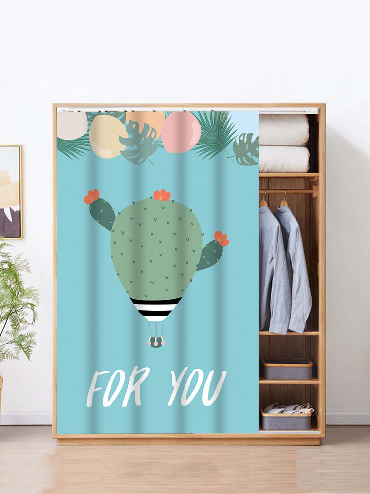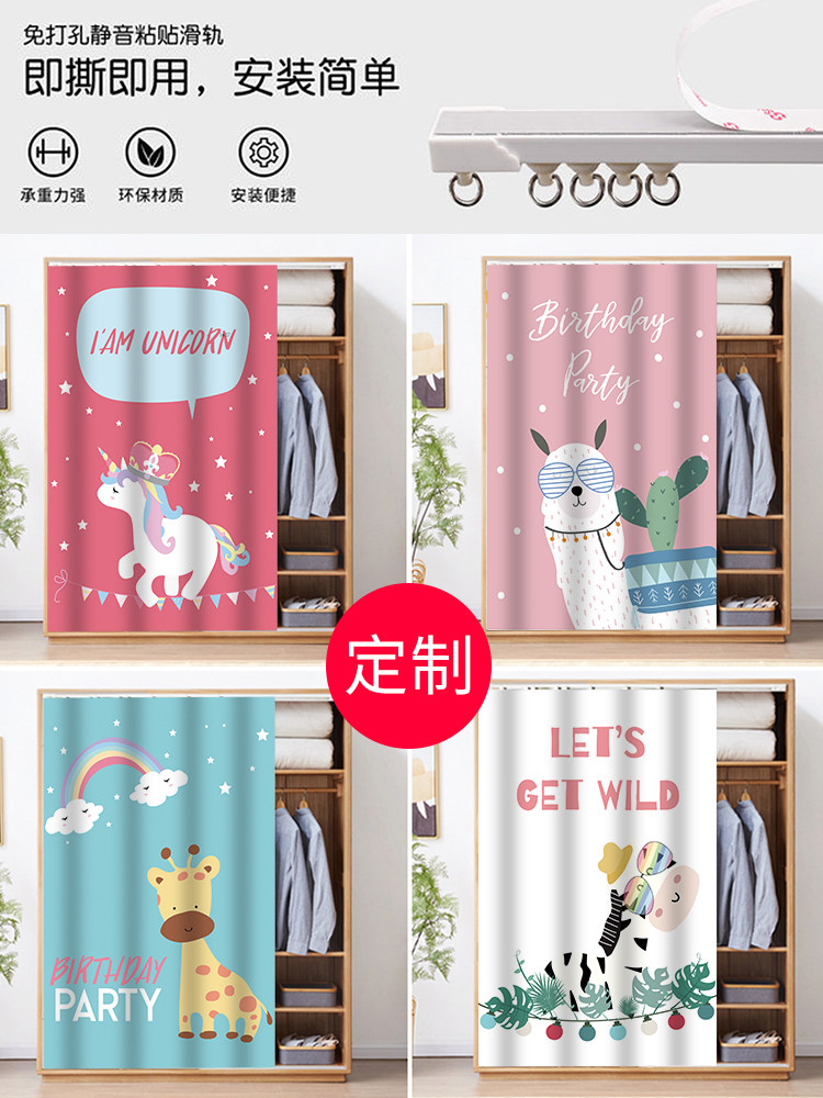 Cartoon Wardrobe Block Curtain Free Punch Slide Rail Type Door Curtain Pull Curtain Bookcase Dust Curtain Cabinet Track Type Cloth
