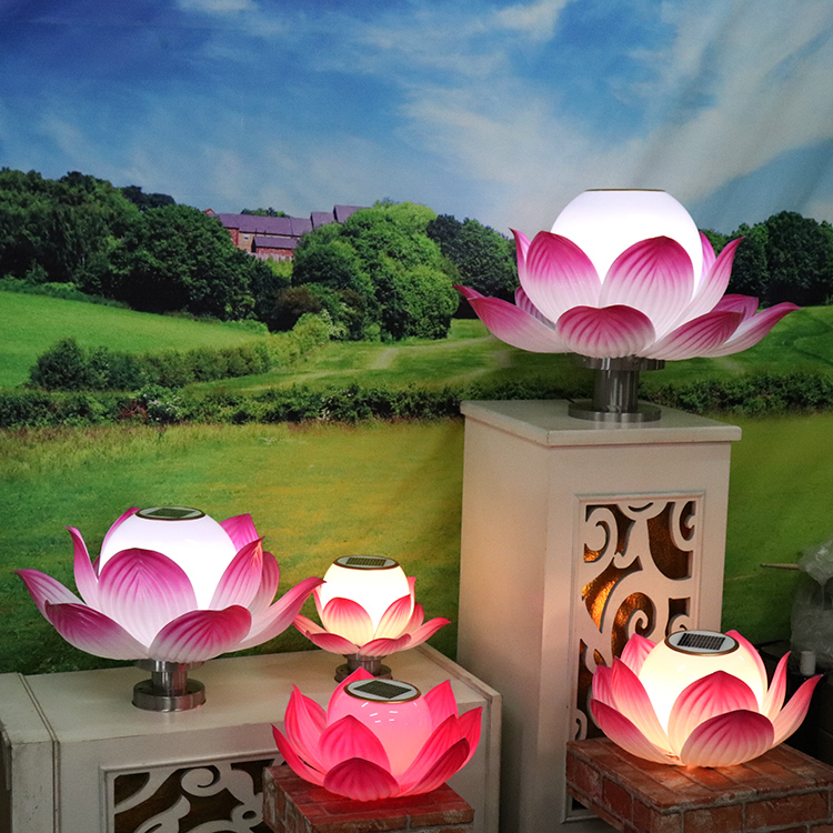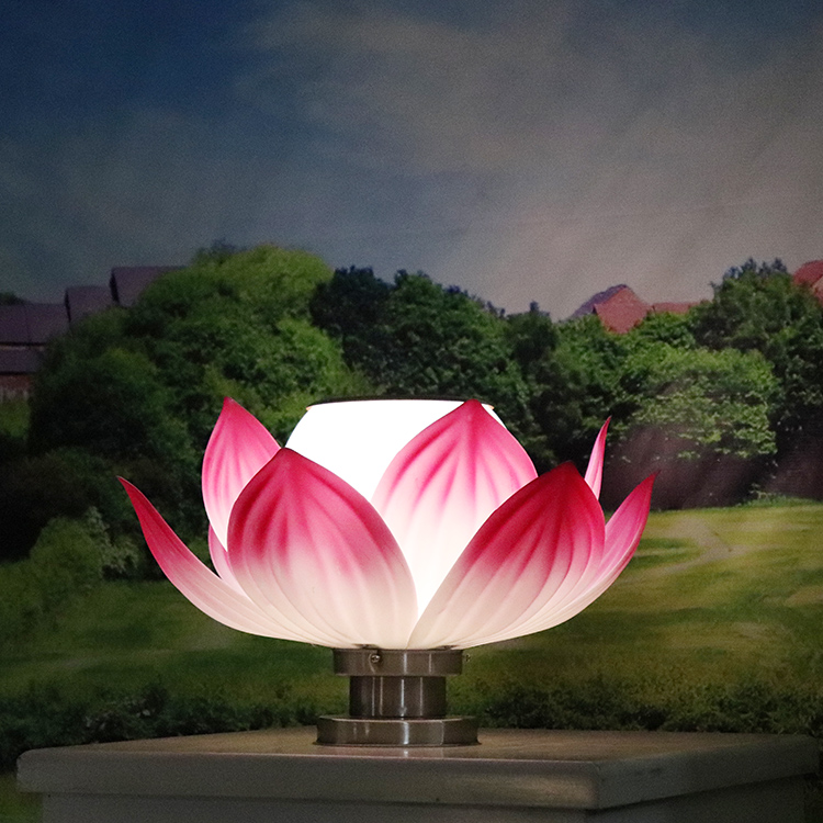 Solar lotus pillar lamp wall column head garden lamp gate post home lotus lamp temple Buddha landscape lawn lamp