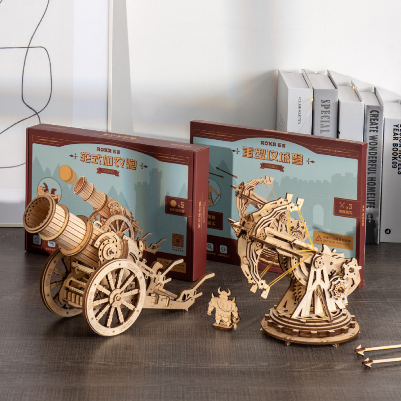 rokr Joker puzzle solid wood 3d assembly model Cannon cannon Diy hand toy Puzzle Gift Boy