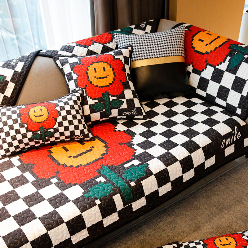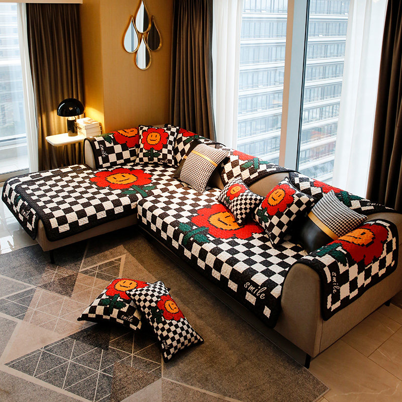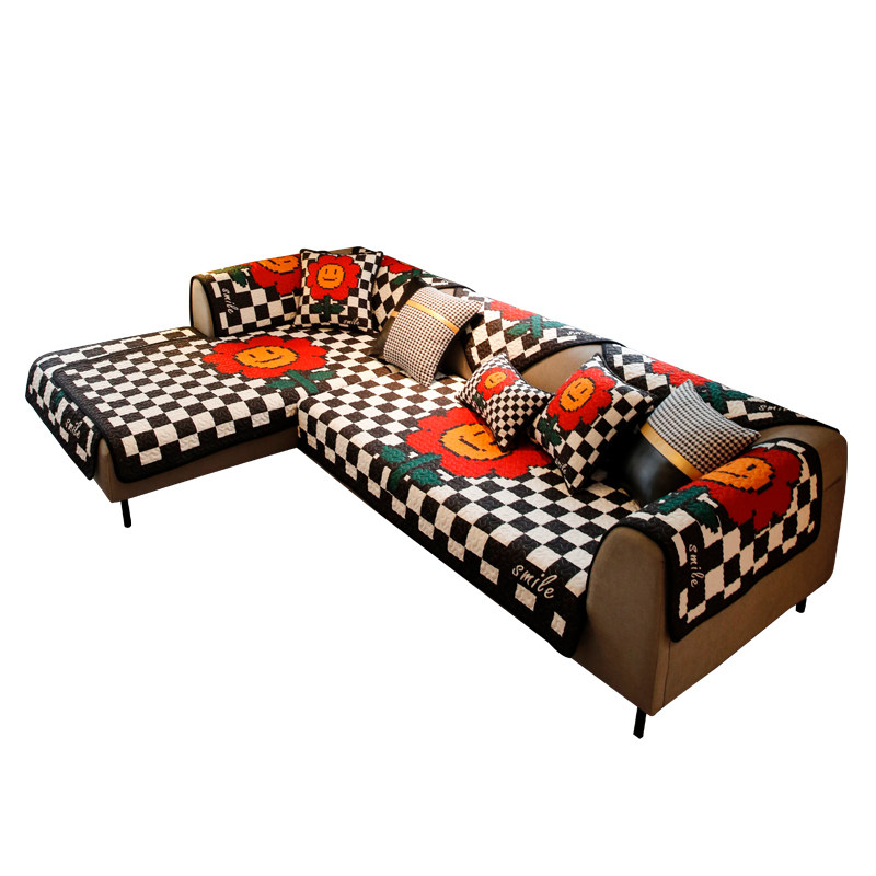 Minshun Checkerboard Sofa Cushion Four Seasons Universal Simple Modern Cartoon Flower Sofa Towel Sofa Cover - Taobao