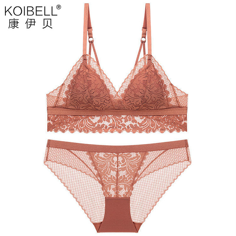 KOIBELL French sexy lace no steel ring bra set small chest triangle cup bra thin cotton cup underwear female
