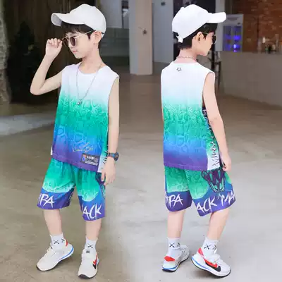 Boys summer quick-drying suit sleeveless vest shorts thin 2021 new boys summer basketball suit western style tide