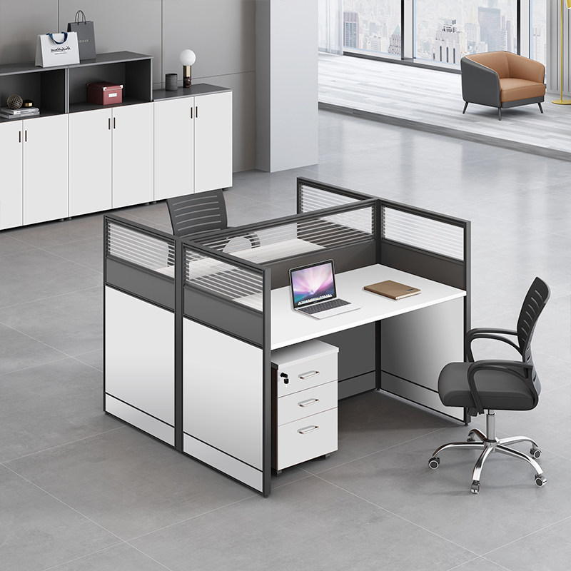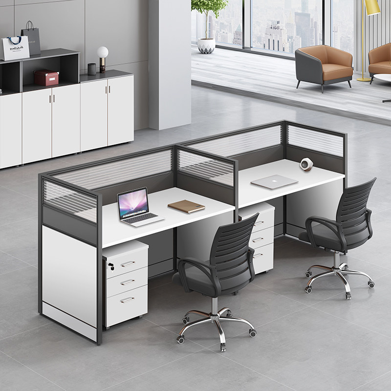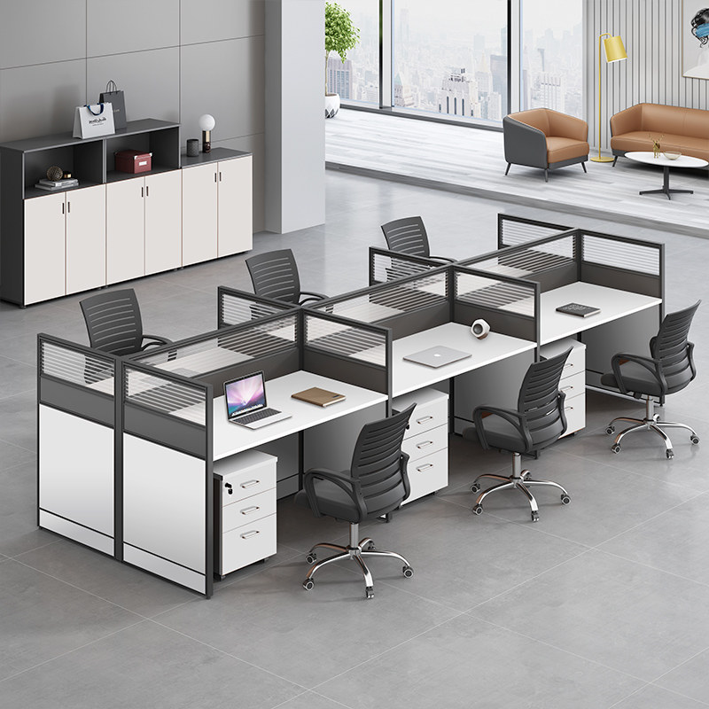 Screen clamping staff station desk 4 people office table and chairs combined warm white card holder computer desk