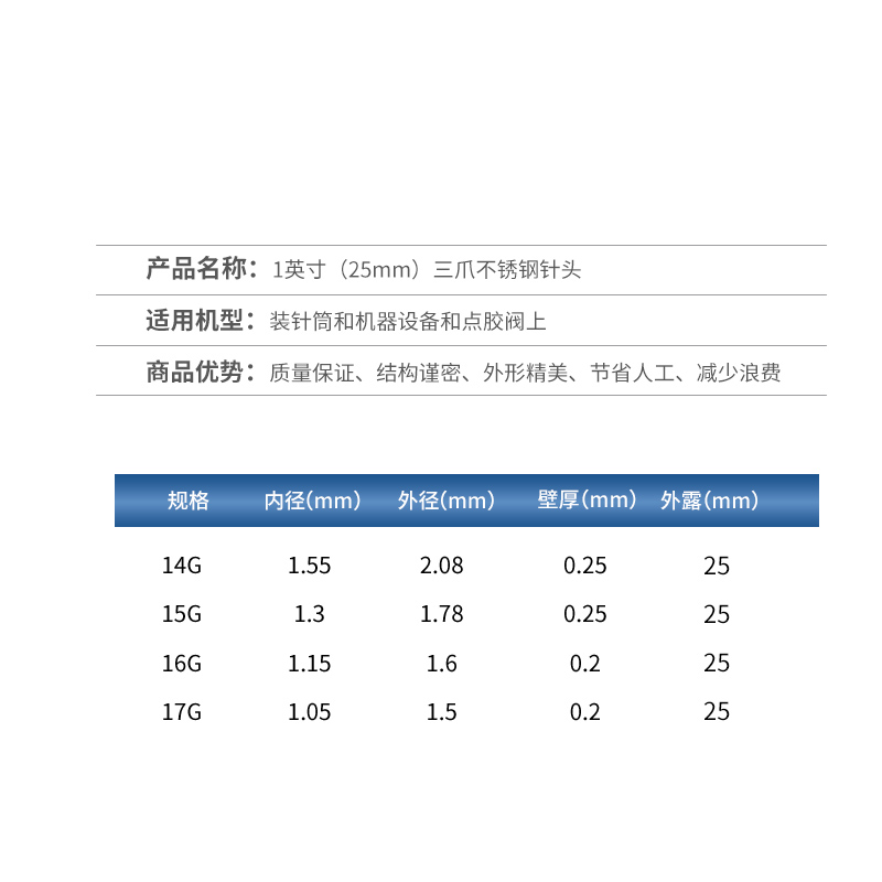 Large one-line flat mouth three-tube 48mm needle tube 25mm precision stainless steel experimental syringe metal dispensing needle