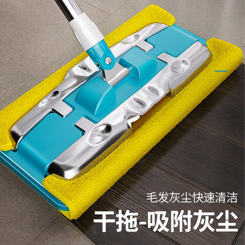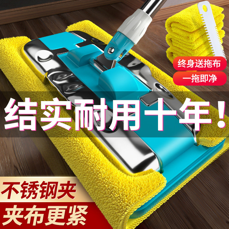 Flat mop household one mop clean mop artifact lazy mop wet and dry dual-use stainless steel clip cloth mop mop