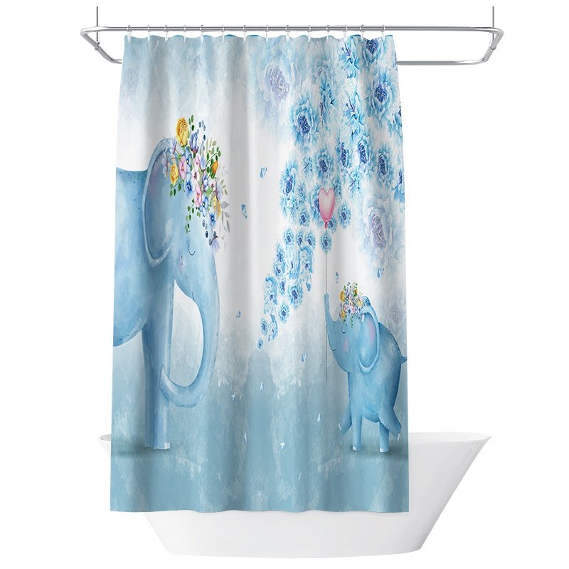 Shower curtain cartoon blue elephant bathroom partition curtain bathroom curtain set free punching waterproof and mildew-proof curtain cloth