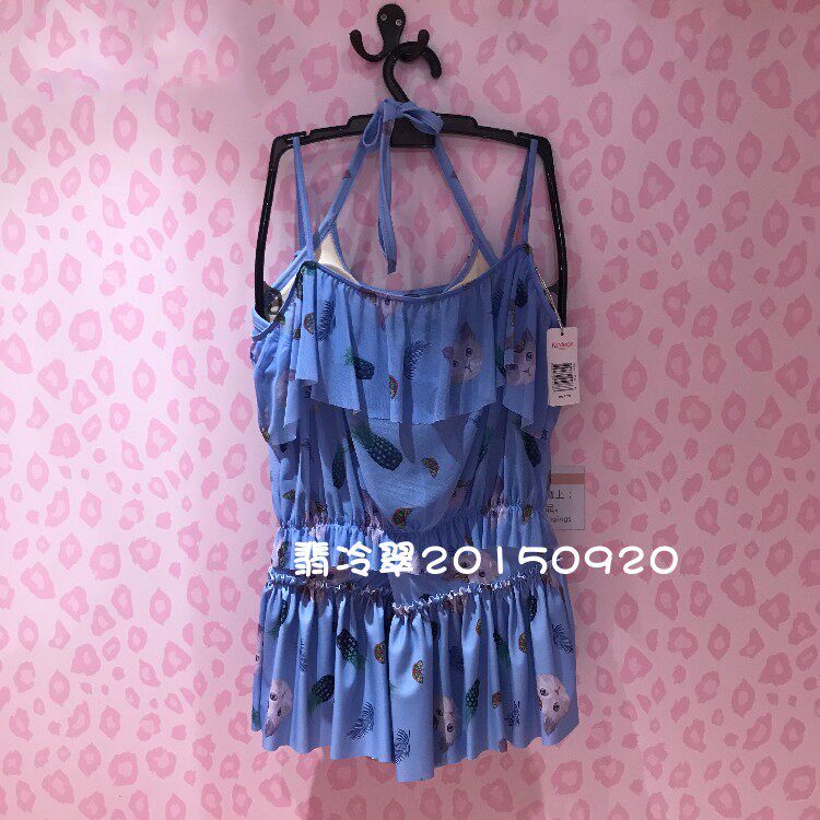 Findpoetry INS Wind kitty printed net yarn swimsuit woman two-piece sexy hanging neck bikini three sets FS0701