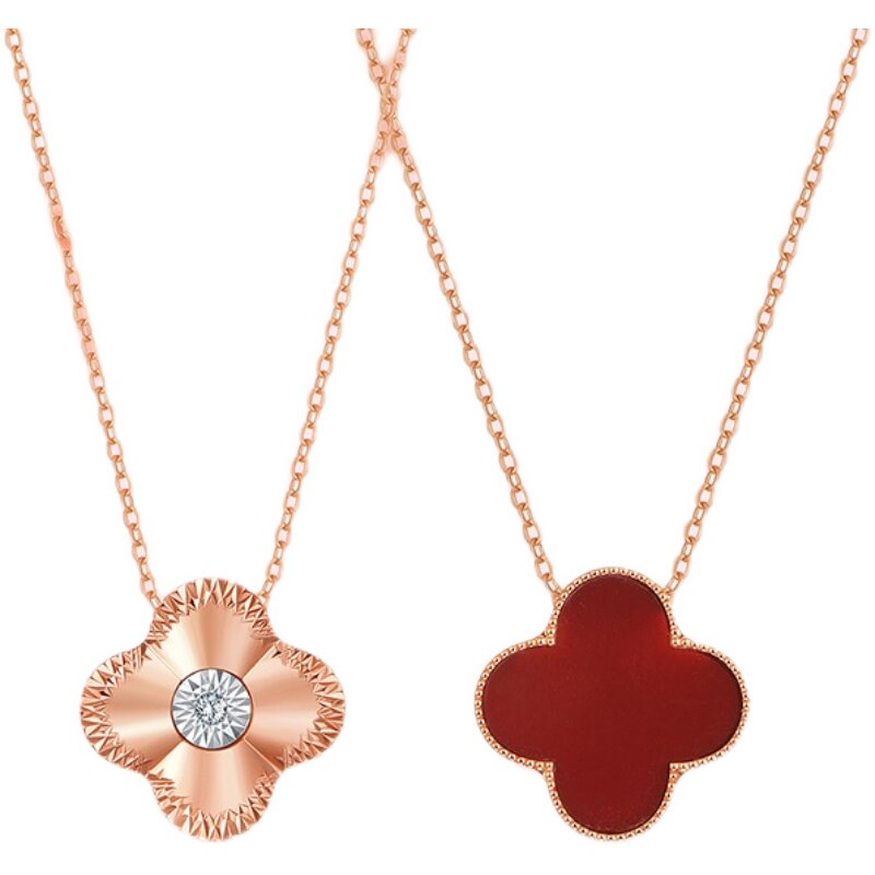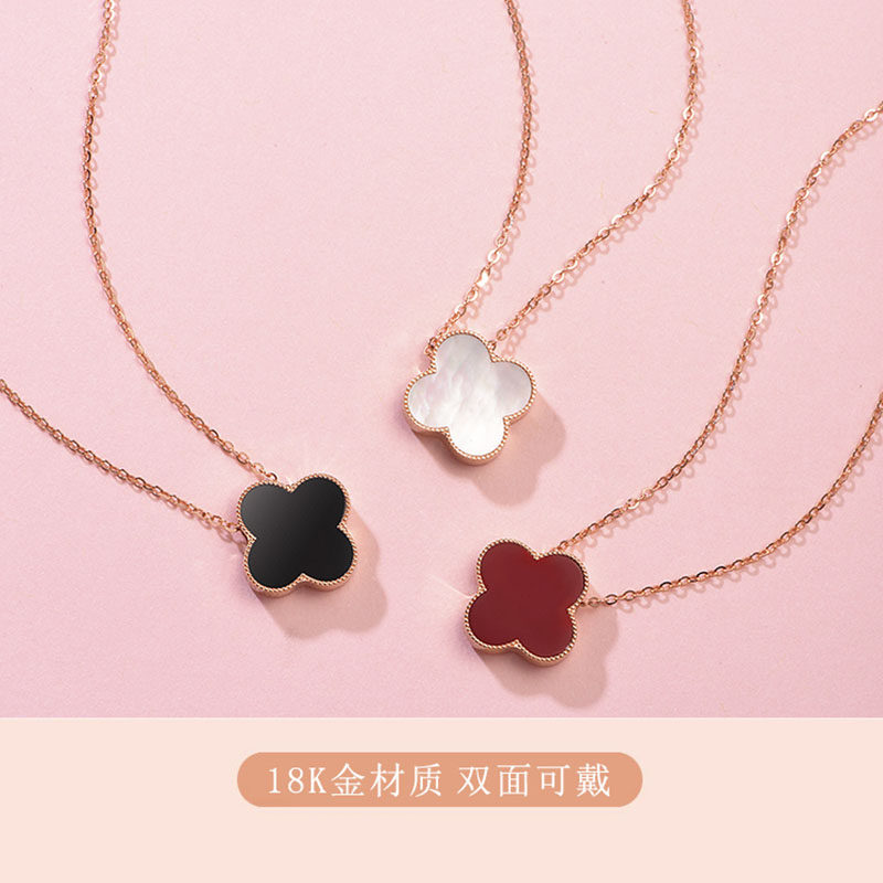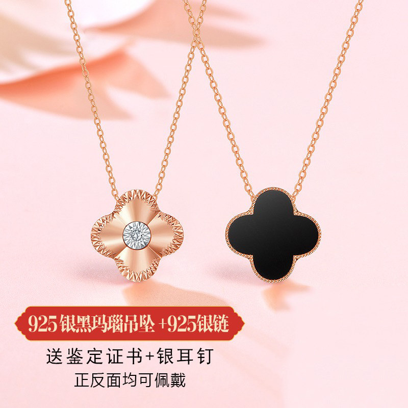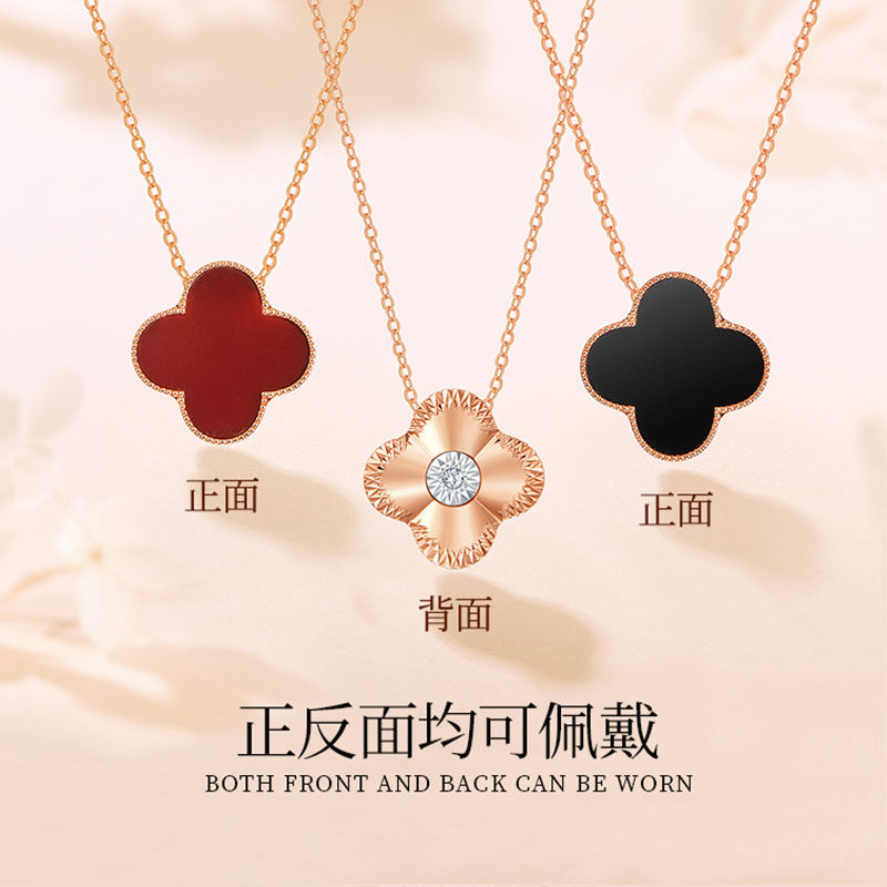 18K Rose Gold Fourleaf necklace female diamond chain black harash pendant to her girlfriend's seventh birthday present