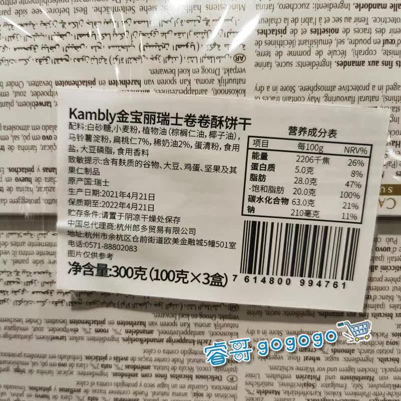 Kambly Kambly Swiss Roll Cookies 300g imported casual snacks snack Shanghai costco