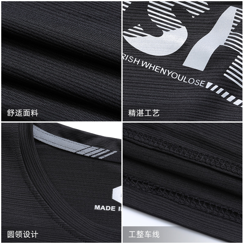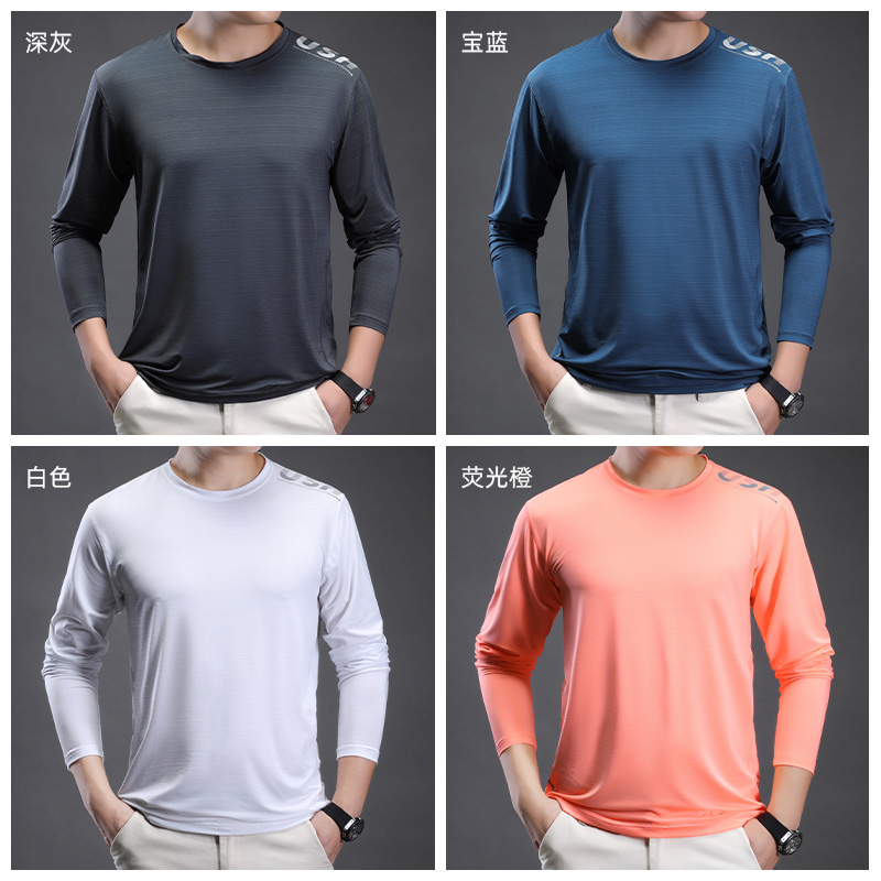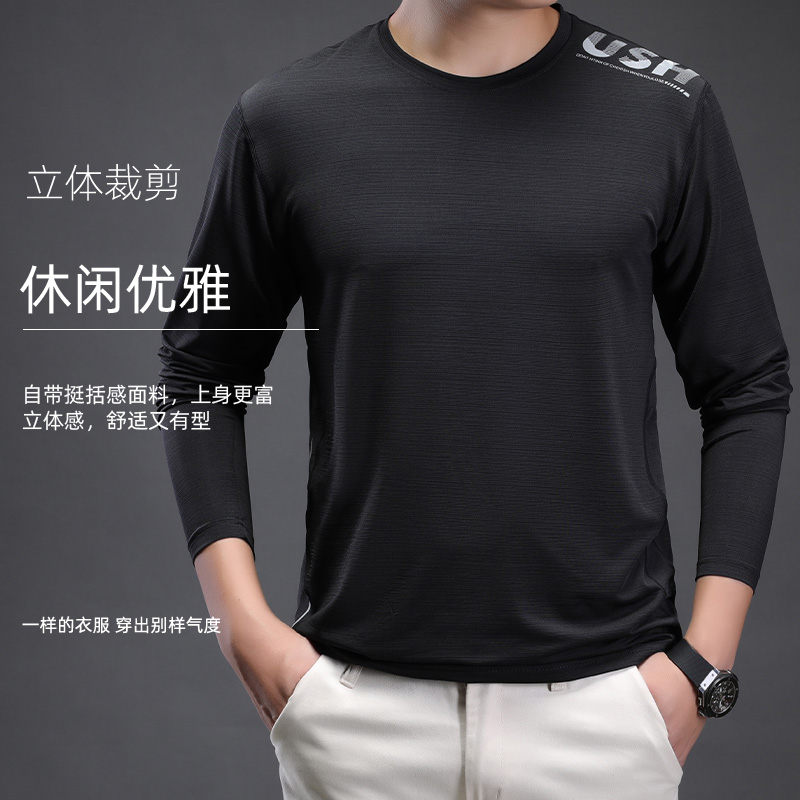 Ice wire long sleeve t-shirt men summer thin speed dry black round collar leisure tops new fitness tide
