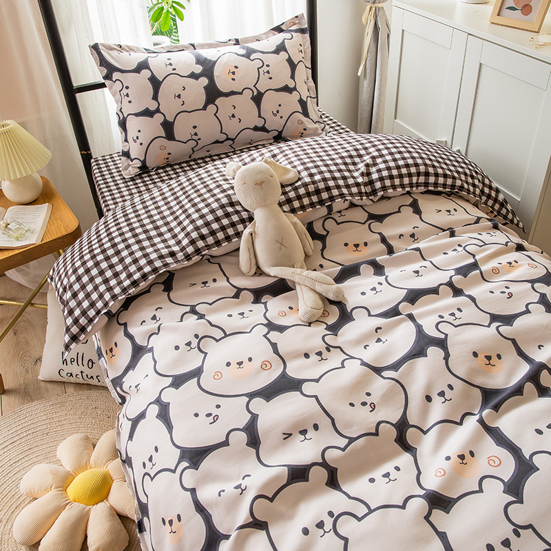Cute cartoon sheet is set in four pieces of sleeping room single bedroom student dorm room three pieces suited for bedding