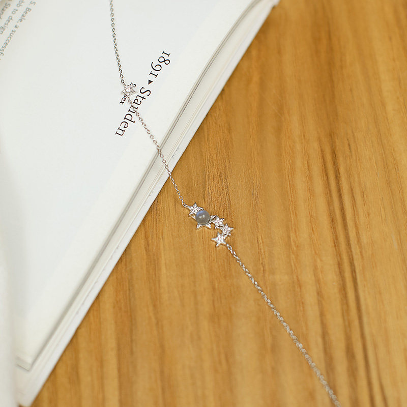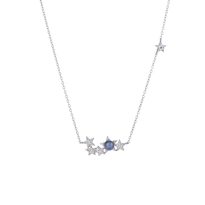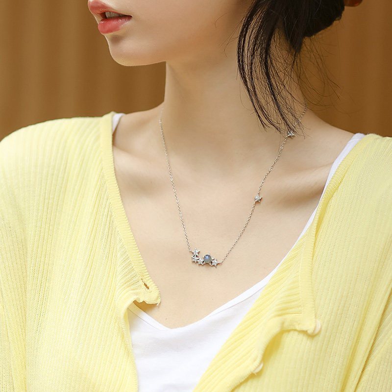 OARVA natural crystal grey moonstone lock bone chain woman 925 pure silver 100 lap necklace guardian star 520 gift