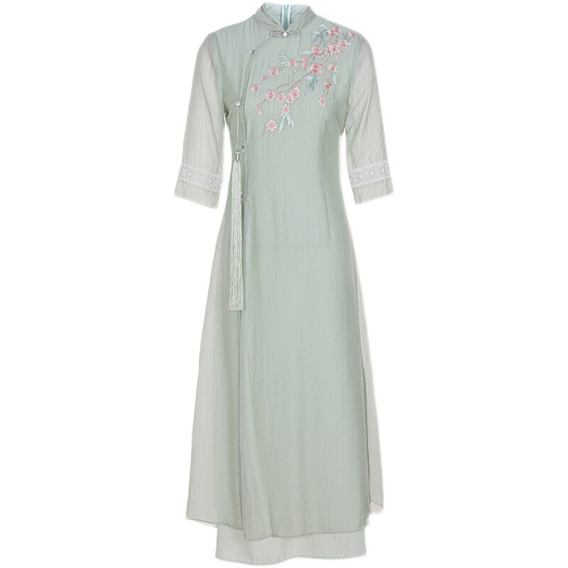 Improvement of the qipao Ocean dress Summer Old Shanghai Republic of China Wind comeback Ancient name Yuanyuan young Art and art Female dress Chinese style tea suit