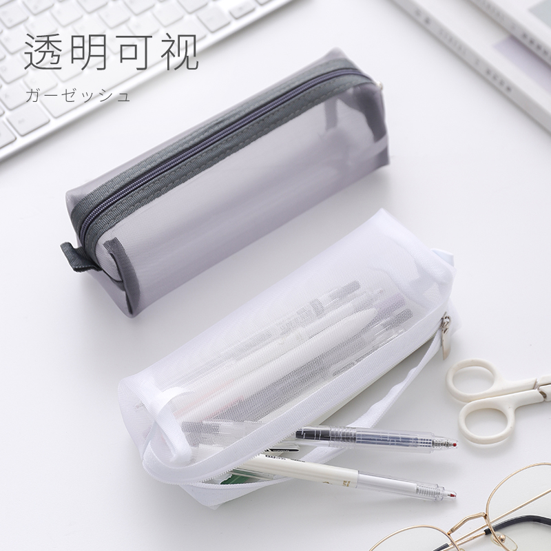 Net Yarn Pen Bag Transparent Brief Joins Wind Day Department Men And Women Large Capacity Stationery Lead Pencil Case Elementary School Junior High School Junior High School Students Examination Special Cashier Bags Gaokao Transparent Gauze Fresh High Face Value Pen Bag