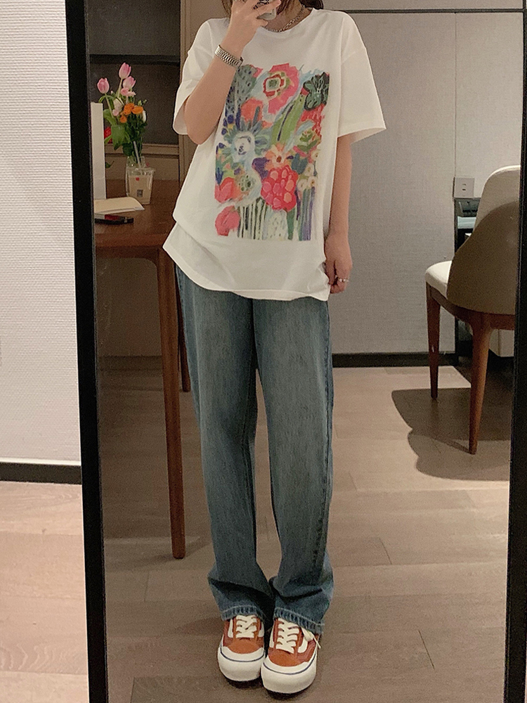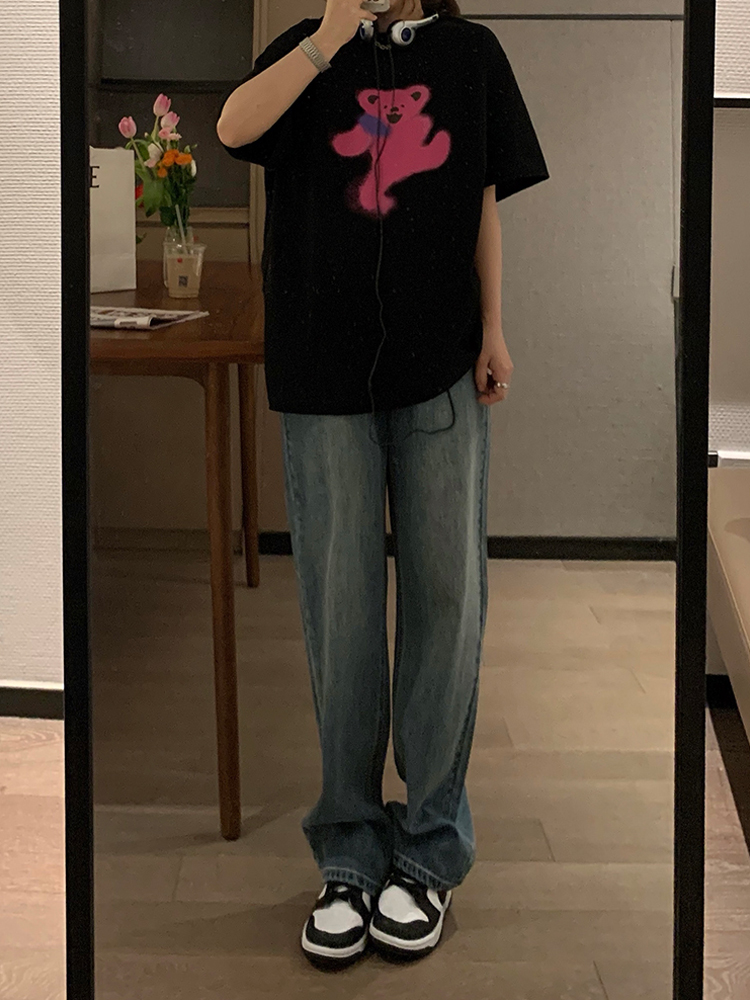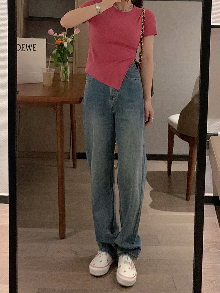 Pear shaped body shade pants fat sister high waist slim straight jeans large-yard fat mm elastic wear