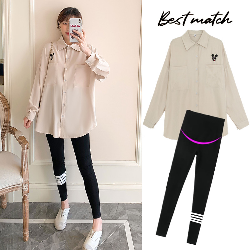 Pregnant Woman Medium Long Version Shirt 2022 Foreign Pie Outside Wearing Fashion Embroidered Blouse Pregnancy Woman Dress Spring Autumn Fluffy Snowspinning Shirt