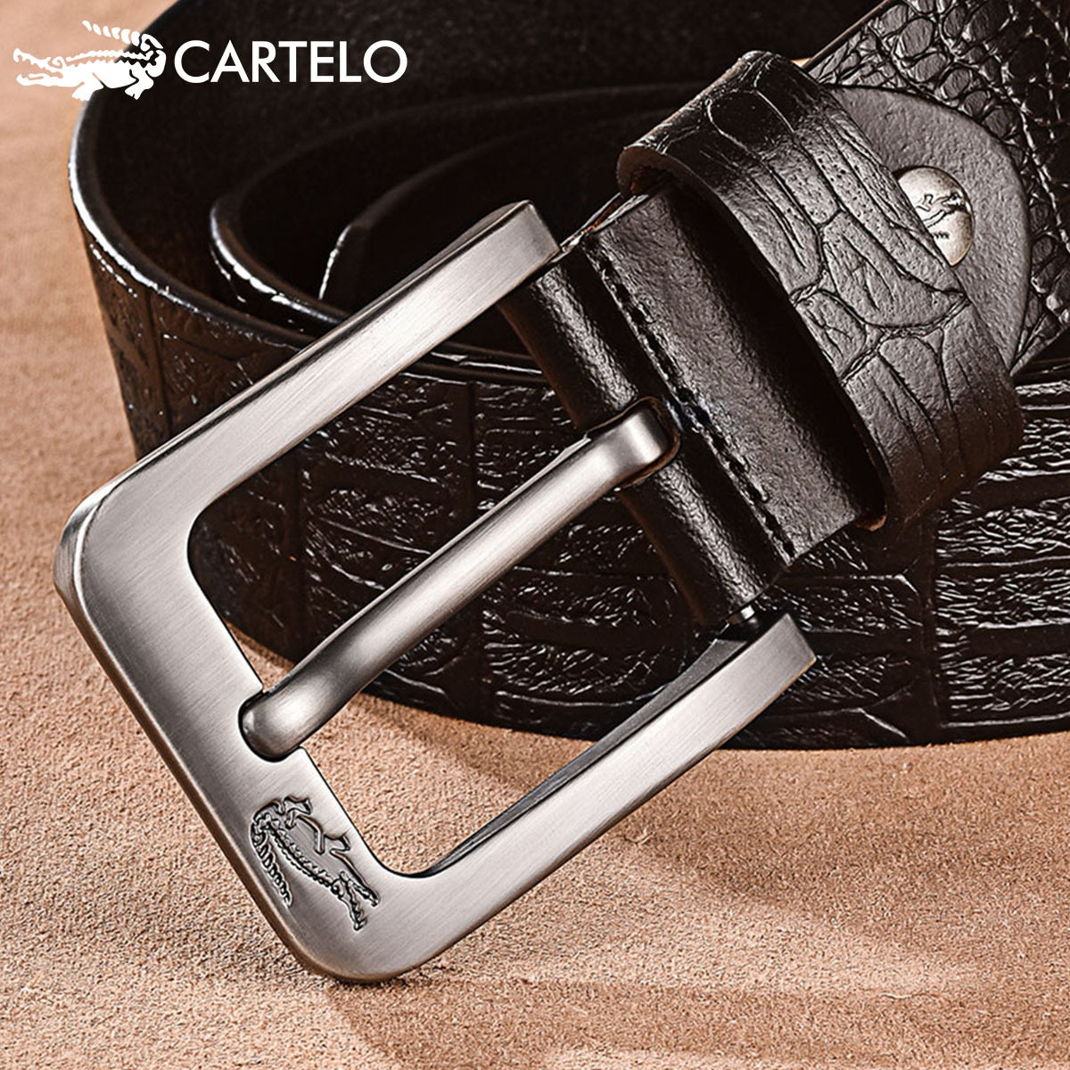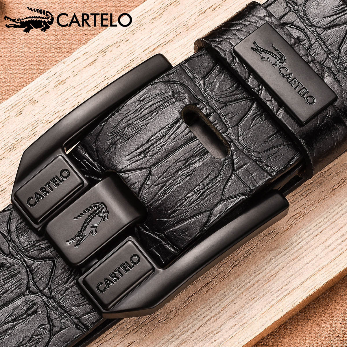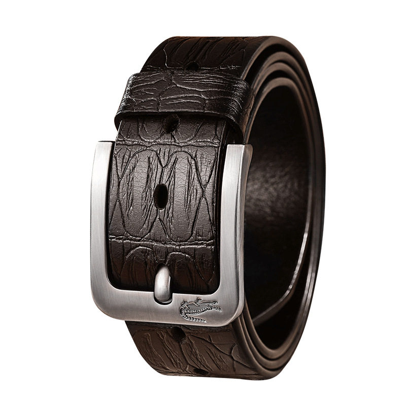 Carcodile Crocodile Crocodile Pure Men Leather Strap Genuine Leather Needle Buckle Belt Head Layer Bull Leather Retro Youth Casual Business Pants Strap