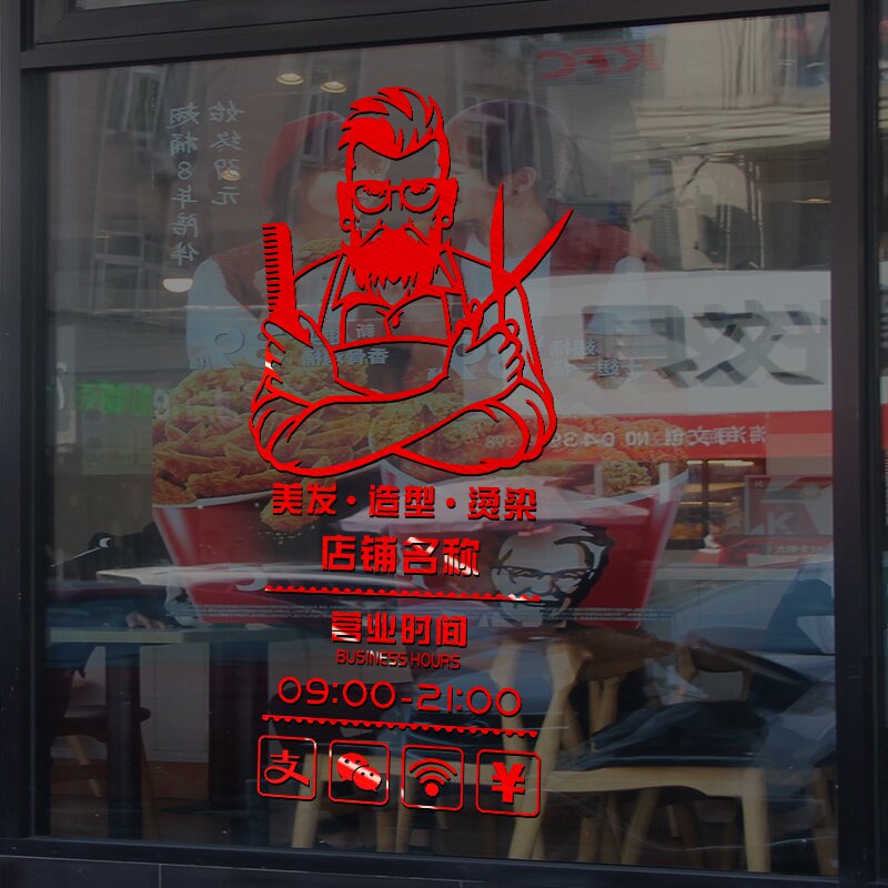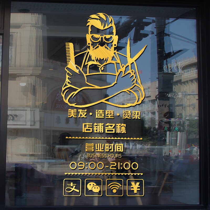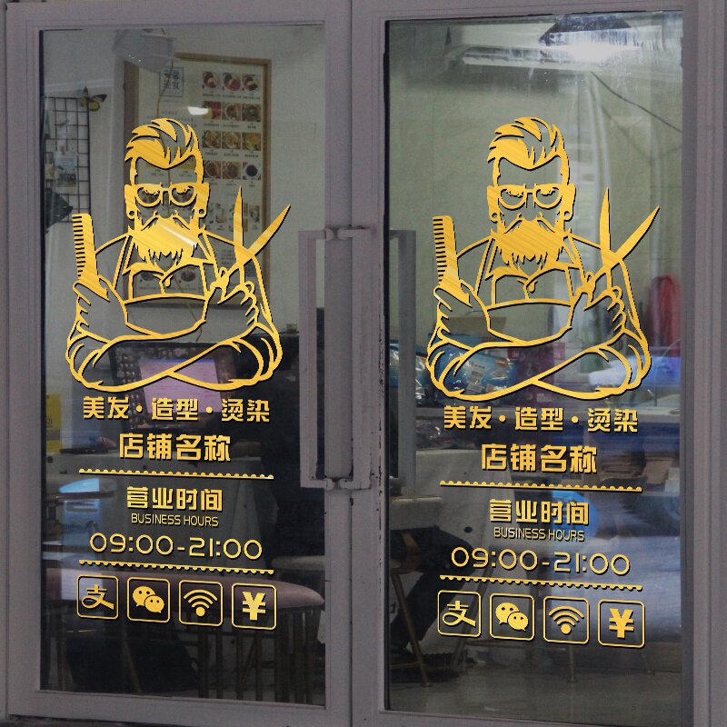 Hairdressing and barber shop glass door business hours creative decorative stickers window wall scene layout wall stickers