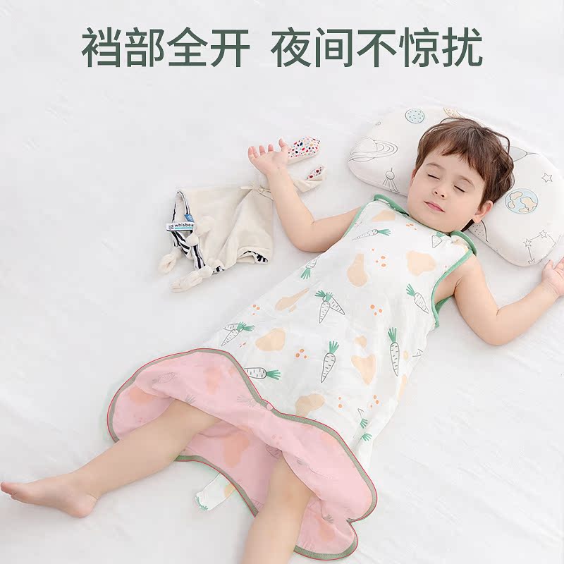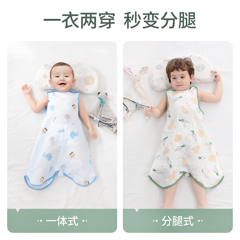 Bass bear summer antibacterial baby split leg sleeping bag thin male and female baby anti-kick quilt cotton yarn cloth sleeveless pajamas