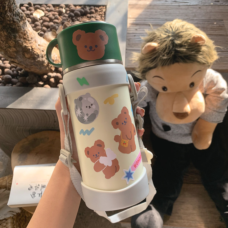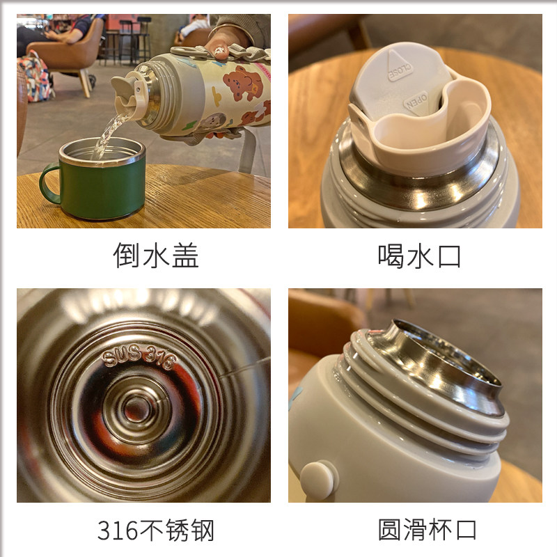 Children's thermos cup 316 food-grade stainless steel baby bag water bottle for primary school students to go to school special anti-fall straight drinking cup