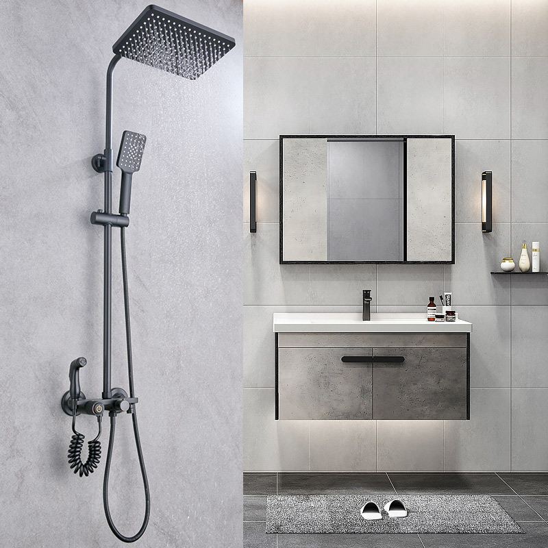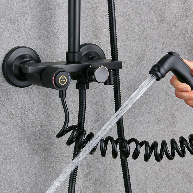 Kaiasee black shower suit Home Makeup Room Thermostatic Control Intelligent Liftable Copper Bathroom Bath Shower shower