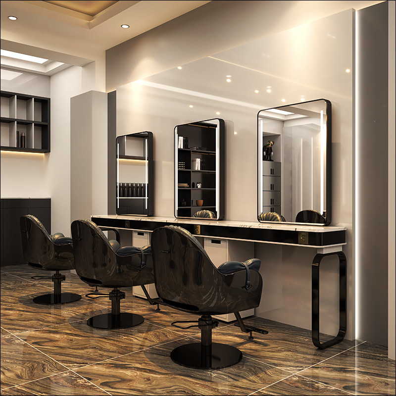 Hairglass hairdresser special LED lamp stainless steel marble hair shop double-sided mirror
