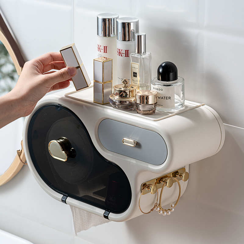 Home ultra-disposable face towel storage box punch-free wall-mounted toilet powder room tissue box cleansing towel rack