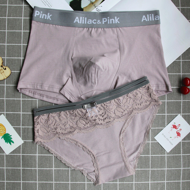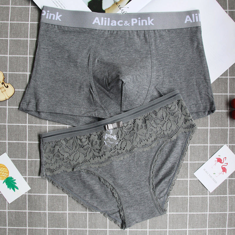 Couple Pants Pure Cotton Suit Sexy Lace Side Double Lift Hip Pants Men's Four Corner Shorts Women Triangle Shorts