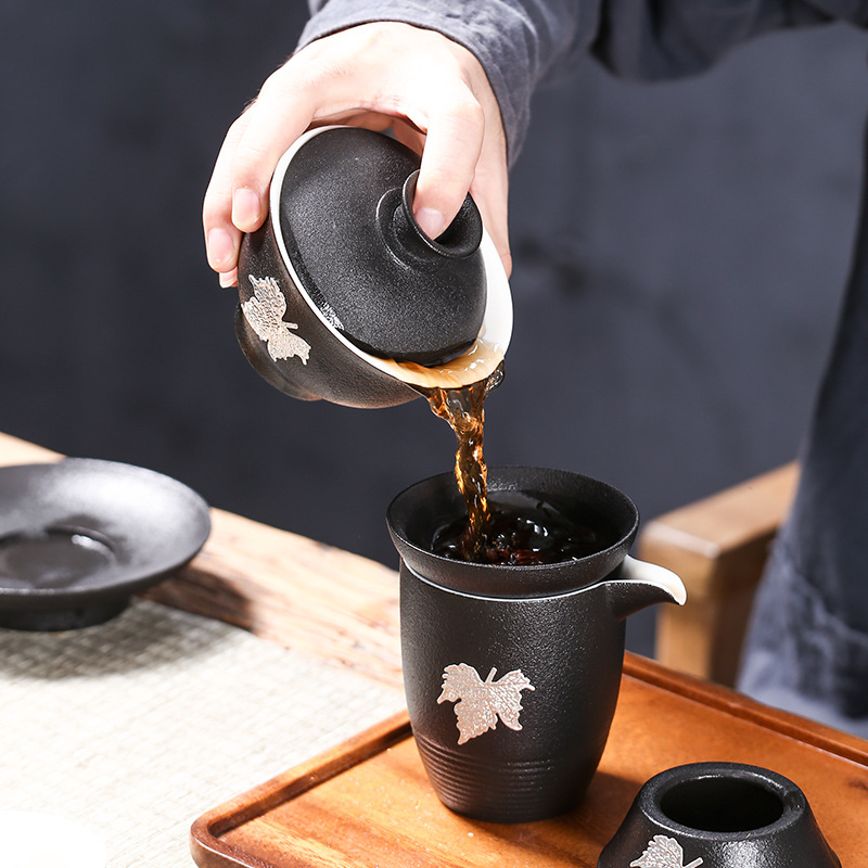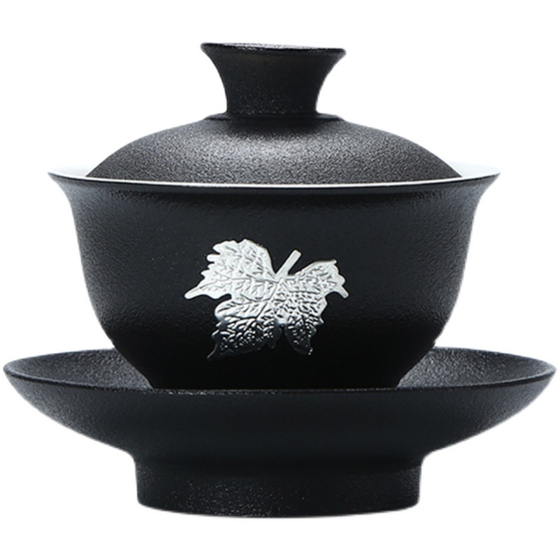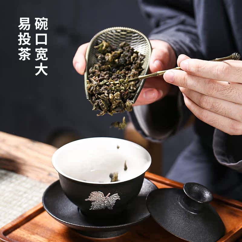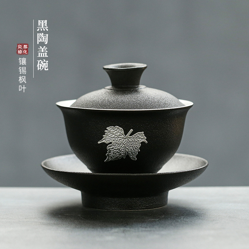 Jingdezhen Ceramics Sancai Gaiwan Single Non-Hot Heat Resistant Tea High-end Kung Fu Tea Tea Bowl Tea Cup Black Pottery