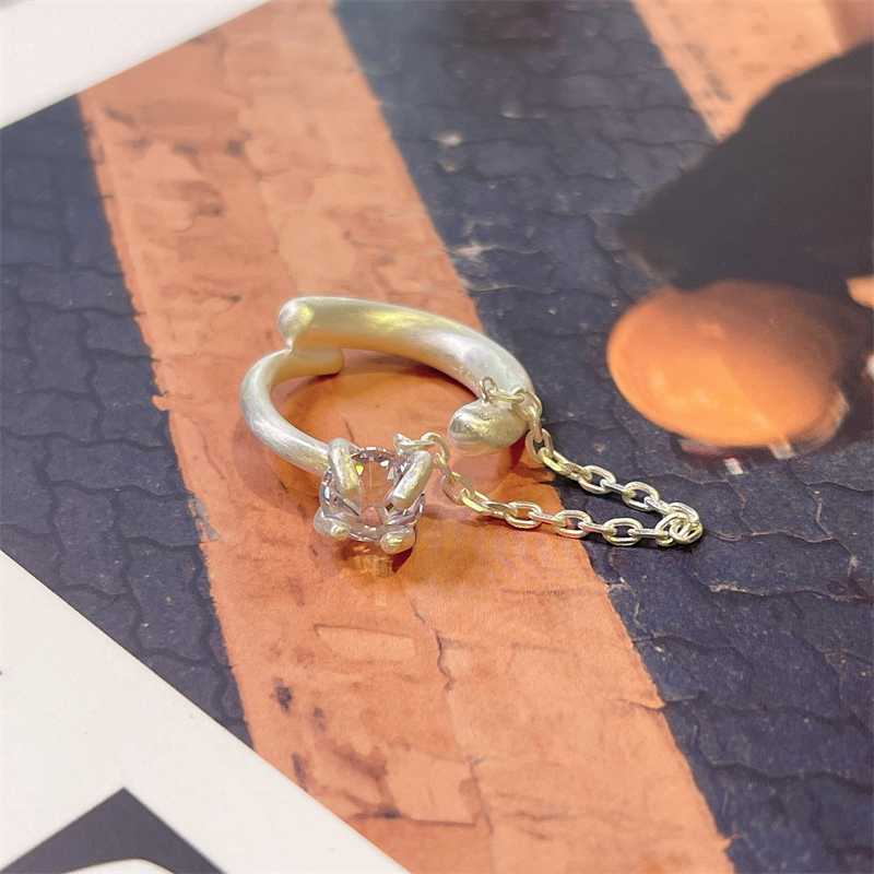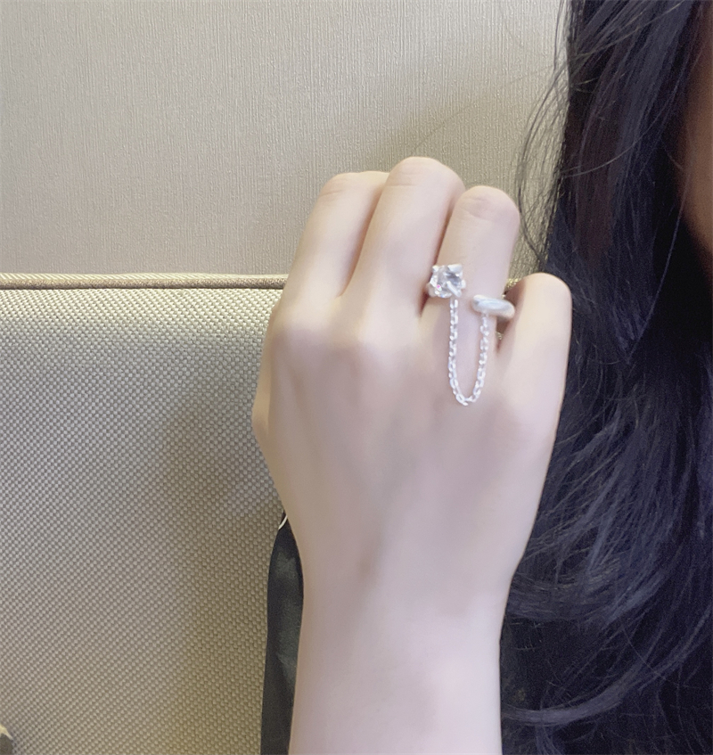 Ambient zircon long version chain burned white sterling silver ring female opening index finger ring design sense fashion personality