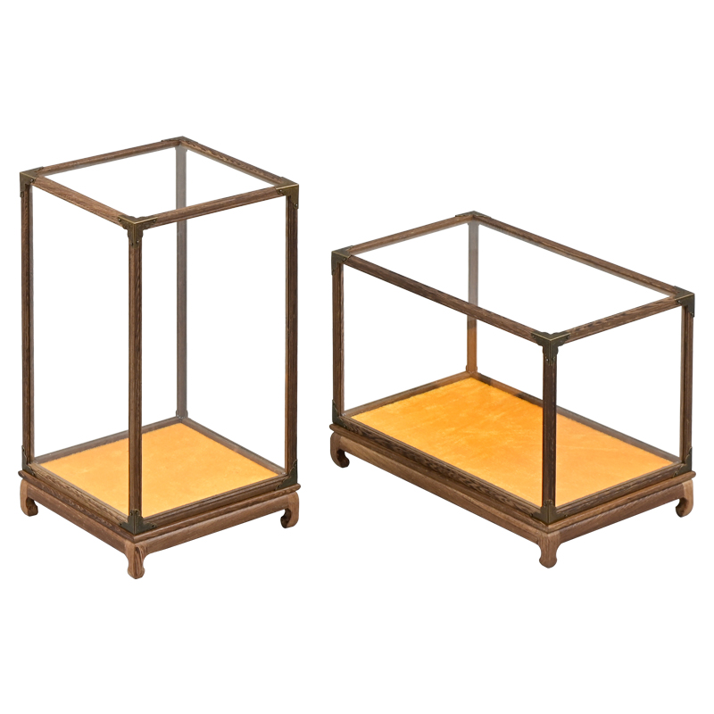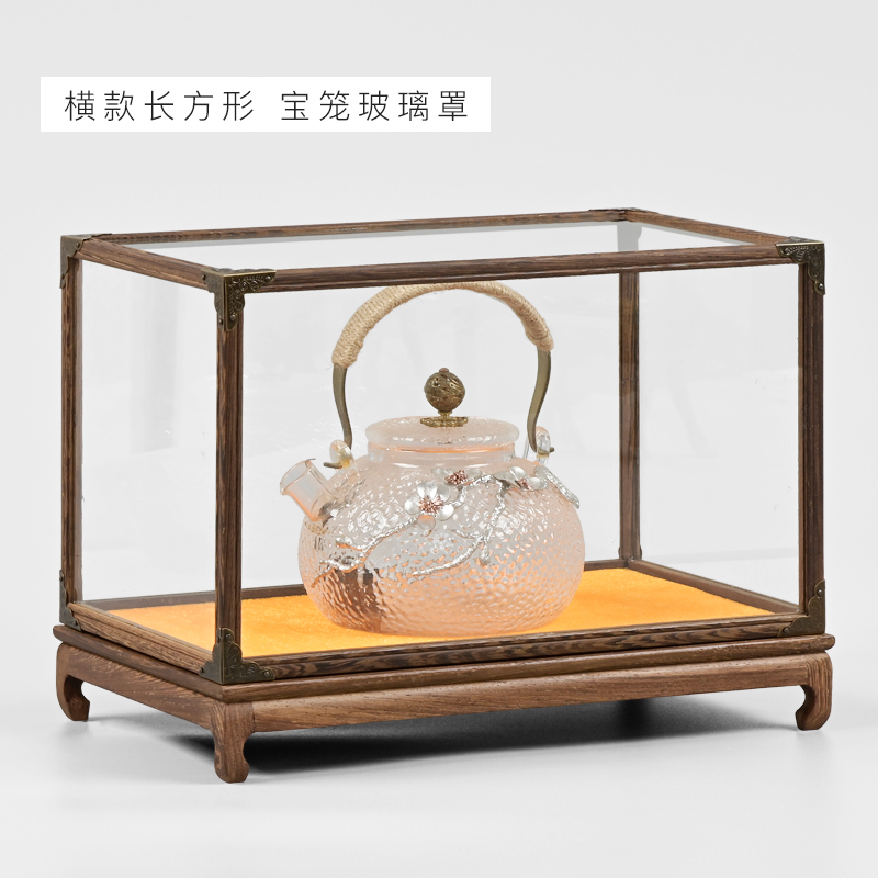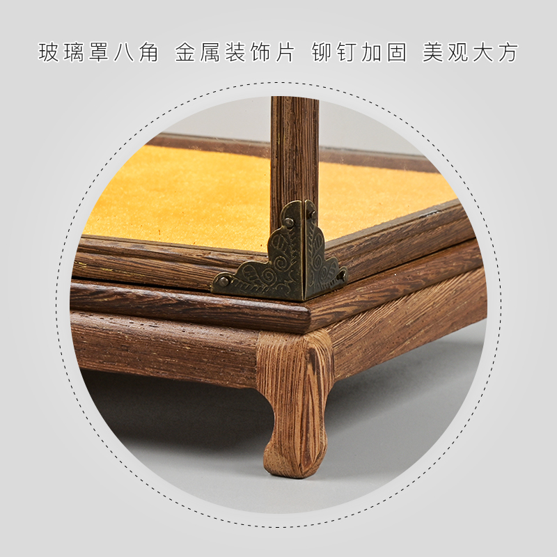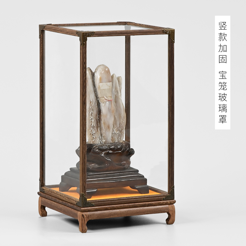 Red Wood Carved Glass Cover Statue of Buddha Guanyin Buddha Niche Crafts Gift Hem Accessories PLAY ANTIQUE TRANSPARENT HOOD DUST COVER DISPLAY CASE SET UP