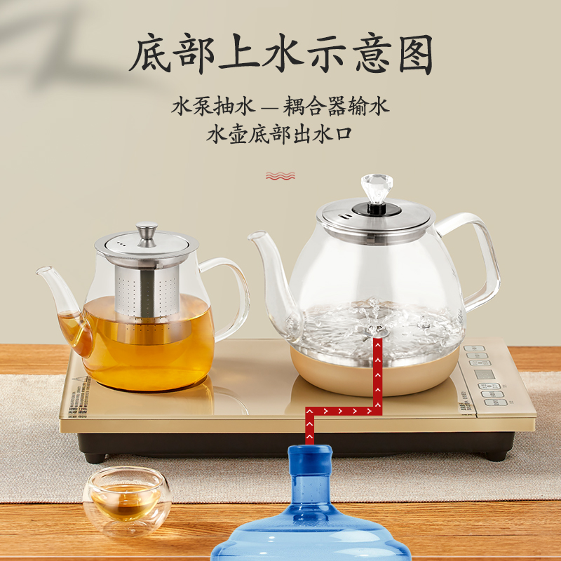Sound automatic pumping bubble tea furnace glass household electromagnetic tea table tea set for the bottom water pumping and one-body package