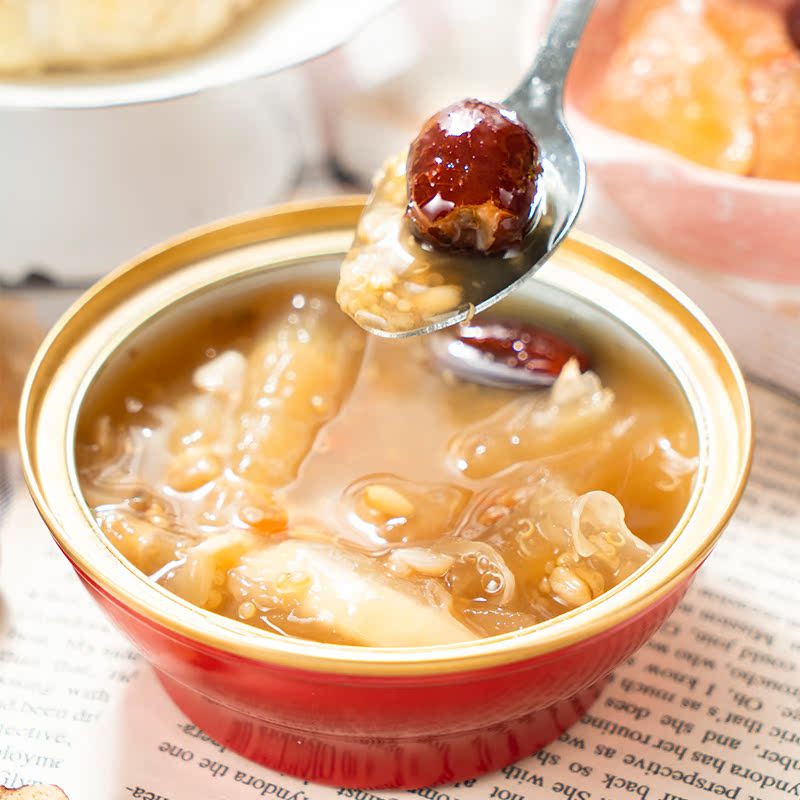 Fish gelatin, quinoa, rock sugar, red dates, longan, lotus seeds, oatmeal, wolfberry