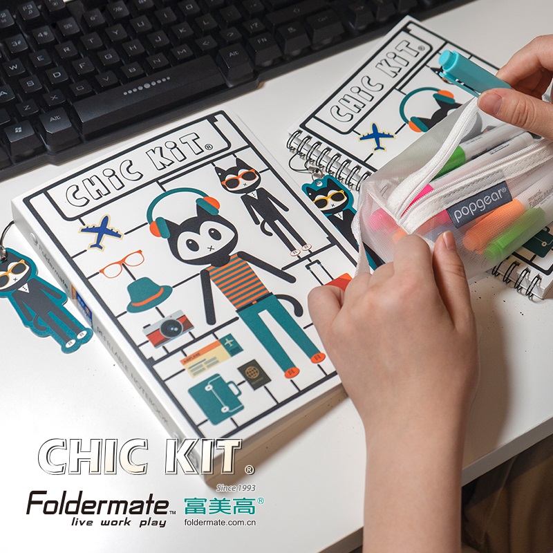 Fumei High-tech Meowke loose-leaf book cute students with information bag cute coil book white cartoon cat foldermate Meowke A5 loose-leaf book coil book