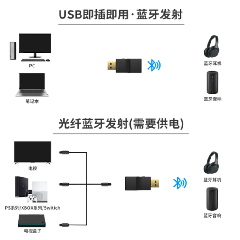 TV fiber optic Bluetooth wireless transmitter one for two Bluetooth headset audio computer audio adapter driver-free