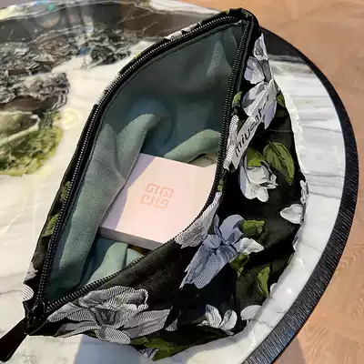 miucatch Magnolia camellia large flower cosmetic bag Jacquard cotton travel portable large capacity storage bag