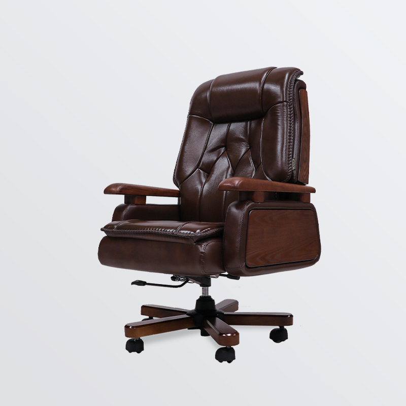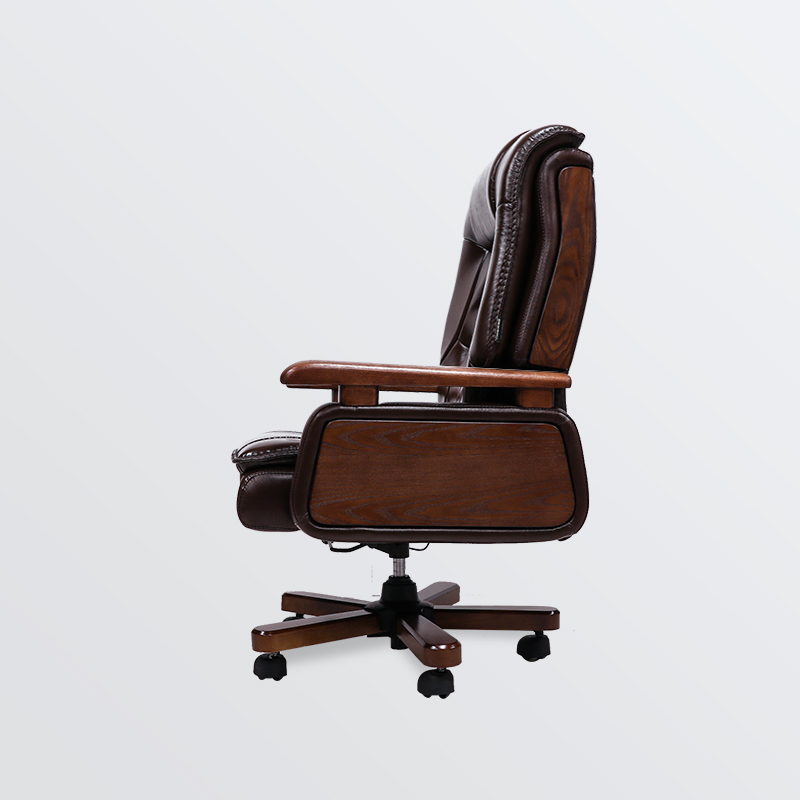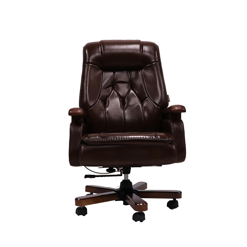 Solid wood President's office genuine leather owner chair upmarket New Chinese Bull Leather Large Class Chair Can Lie Swivel Chair Office Chair Subs