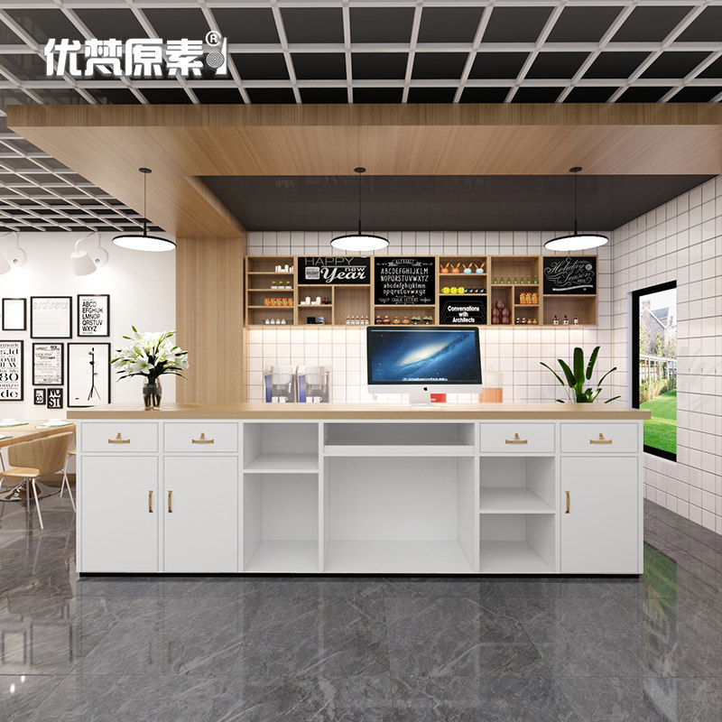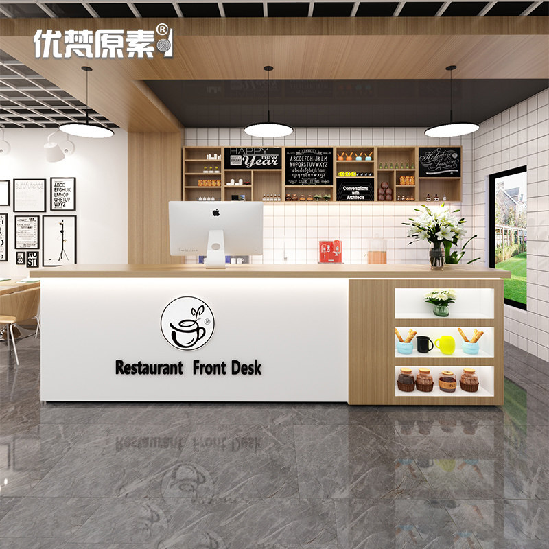 Cashier Counter Corner Cake Milk Tea Shop Bar Water Bar Beverage Shop Custom Creative Light Strip Nail Art Front Reception Desk